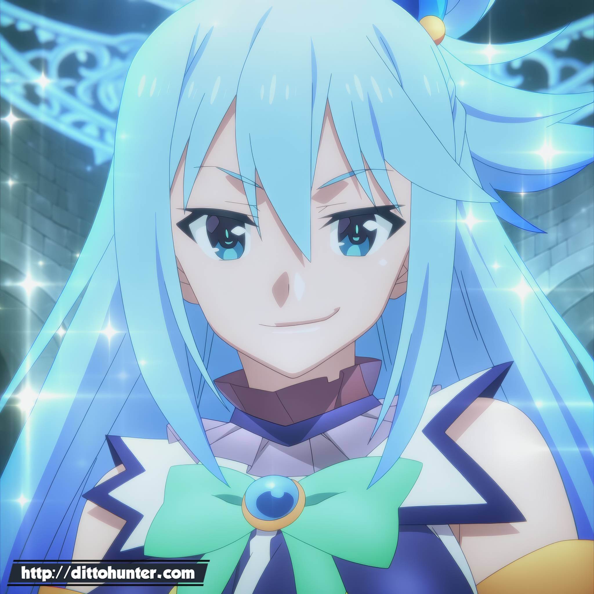 Aqua steps into the ethereal glow of the magical realm, her divine aura accentuated by the elegant lingerie that clings to her figure. Her playful demeanor contrasts with the sensuality of the moment as she poses, embodying both divinity and allure, promising a captivating spectacle unlike any other.