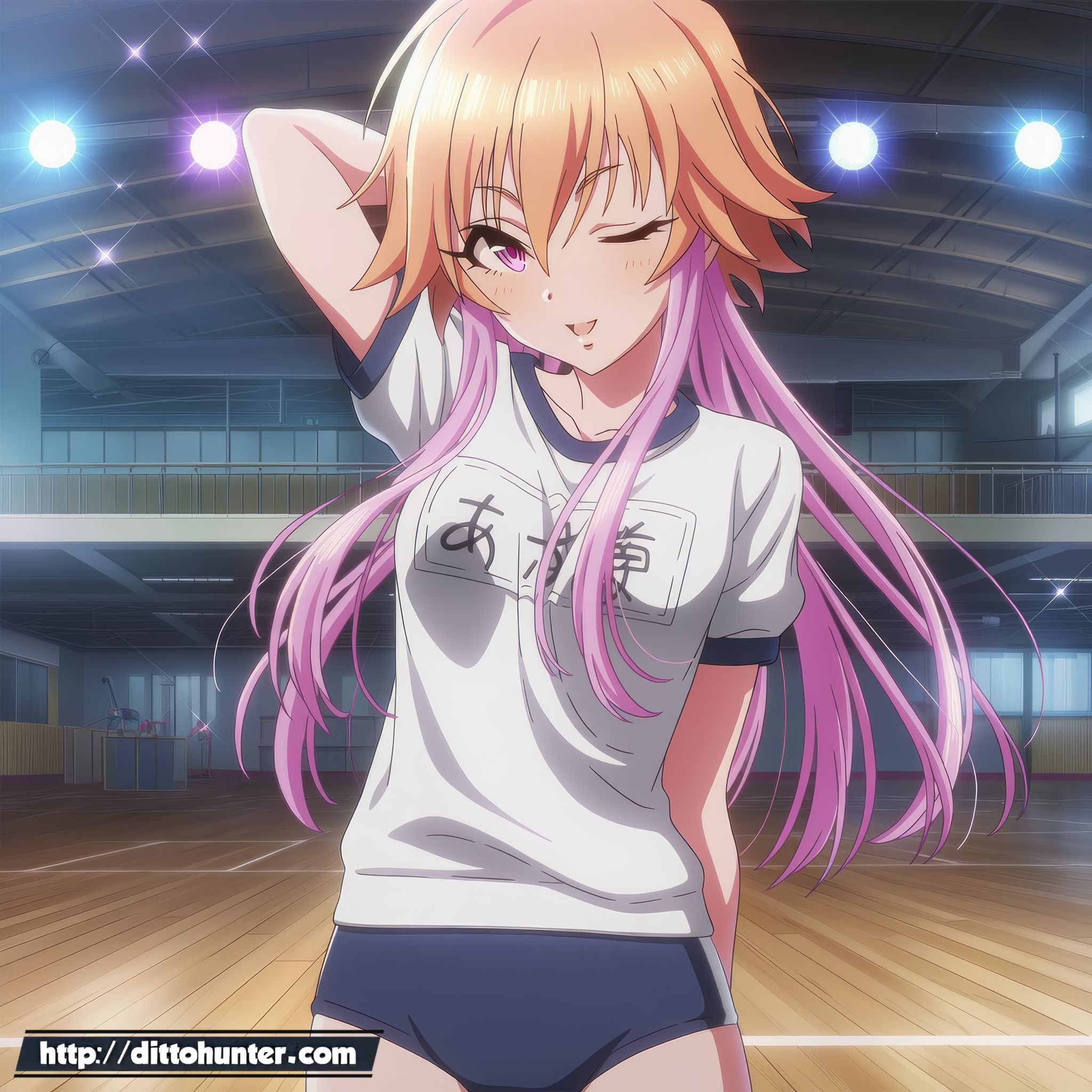 In the world of Idolmaster Cinderella Girls, Asuka Ninomiya takes center stage, showcasing her skills in a Japanese gym uniform with blue bloomers. Asuka's captivating performance turns heads, revealing a side of her charm that's both playful and alluring, as she effortlessly blends athleticism with her unique style.
